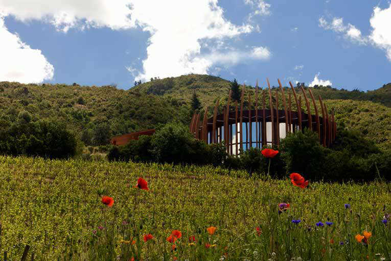 コルチャグア・ヴァレーの3方を山に囲まれた馬蹄型の土地の斜面に広がるアパルタ・ヴィンヤード。アンデス山脈と太平洋からの冷涼な風により昼夜の寒暖差が大きく、目の前を流れる川により急激な天候の変化を受けにくい恵まれた環境です。