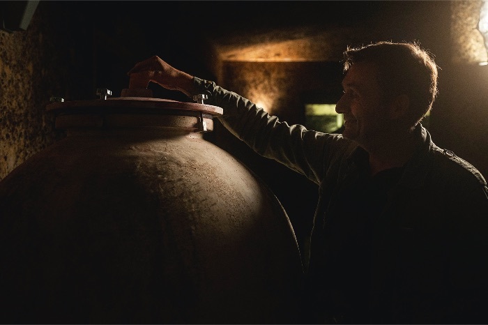 熟度に応じて収穫日を決定し、収穫はすべて手摘み。ワイン造りではほとんど介入せず、可能な限りシンプルに行います。SO2は最低限使用し、優しい抽出を行います。果実のピュアさを最大限表現するために新樽の使用は最大20%程度に抑え、テロワールを再現するためにのみ使います。一部のキュヴェではアンフォラも使用。熟成は長く、ワインが自然に安定するために、二冬越します。