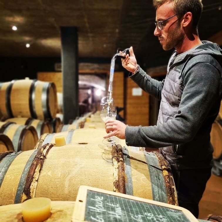 土地を耕し、土地の持っている力を最大限引き出します。常に畑に出て最高のぶどうを造りだし、最高の状態で収穫し、そのぶどうの魅力を最大限引き出すことを心がけています。樽熟期間中は、週1回のバトナージュを実施し、ぶどうのポテンシャルを最大限引き出し、フィルタレーションも極めて軽くしているため、パワフルなワインを生み出しています。酸化防止剤(SO2)もごく少量にとどめ、2000年頃から、段階的に有機栽培を始めているのも、このドメーヌでならではの、畑とぶどうに対する愛情の表れかもしれません。